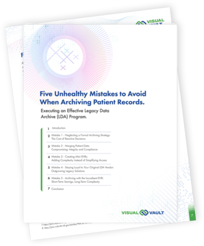 VisualVault’s Legacy Data Archive consolidates patient records from multiple retired EMRs into a single, secure platform — speeding up EMR retirement, reducing costs, and maintaining full access for ongoing patient care.